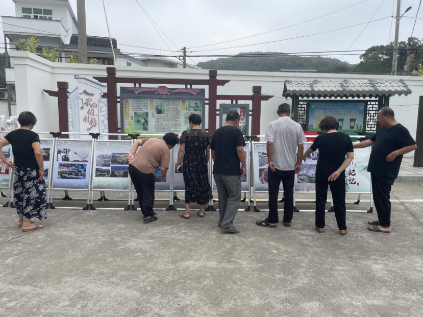 文化禮堂外的小廣場上分布著多塊精心布置的非遺展板,吸引了眾多村民駐足觀賞,展示內(nèi)容涵蓋舟山地區(qū)傳統(tǒng)工藝、民俗風情、歷史遺跡等各個方面的非遺項目。通過圖文并茂的形式,村民們深入了解舟山地區(qū)的非遺文化,包括舟山記憶和可移動的文物展品。
