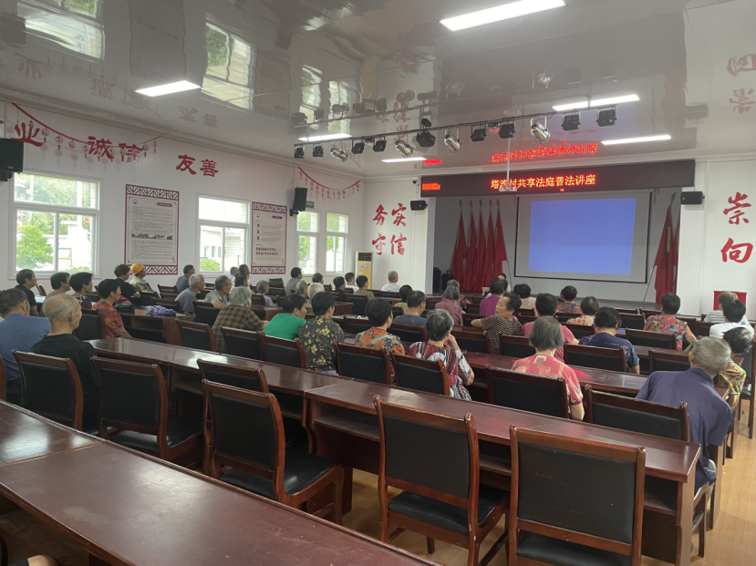 10月16日,普陀區(qū)桃花鎮(zhèn)塔灣文化禮堂開展普法講座。